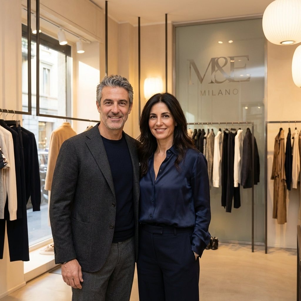 At Matteo & Elena milano, everything starts with passion for fashion. From a young age, Matteo and Elena shared a lifelong love for style and creativity. Both studied Fashion Design and Business before building their careers in the industry. After working for different companies, they came together as a couple and decided to create something of their own.