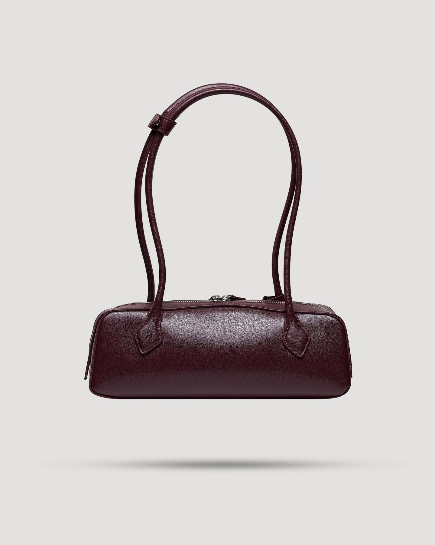 Borsa baguette a spalla in vera pelle martellata con zip doppia.