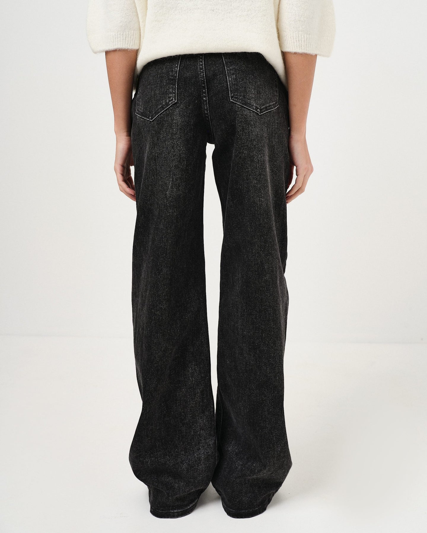 Denim oversize a palazzo a vita alta lavaggio scuro.