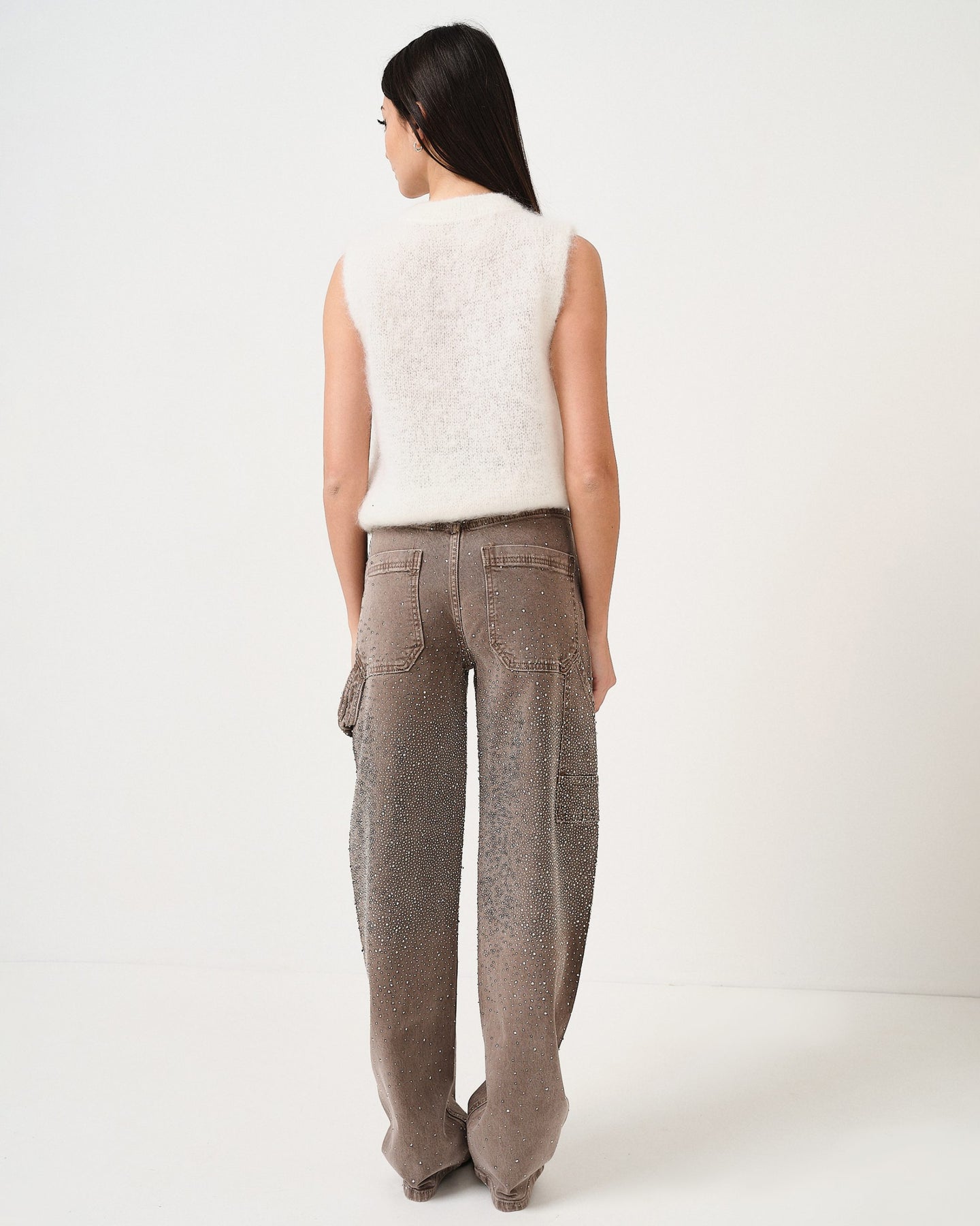 Denim cargo vestibilità baggy tempestato di strass con tasche e passanti in vita.