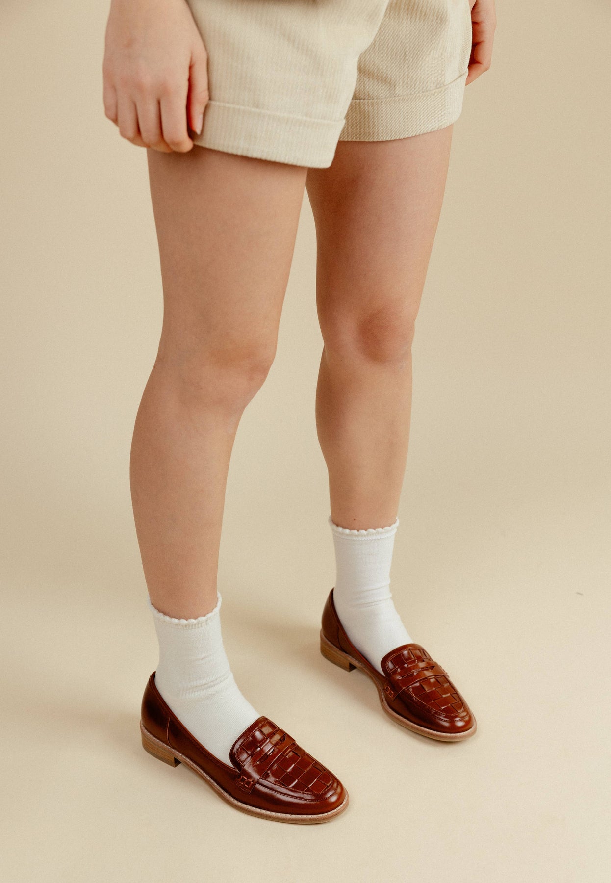 👜 Dettagli: Realizzato in pelle color cuoio con un sofisticato effetto intrecciato sulla tomaia, soletta morbida e tacco basso per una calzata comoda tutto il giorno, suola antiscivolo in gomma con grip per maggiore stabilità e sicurezza